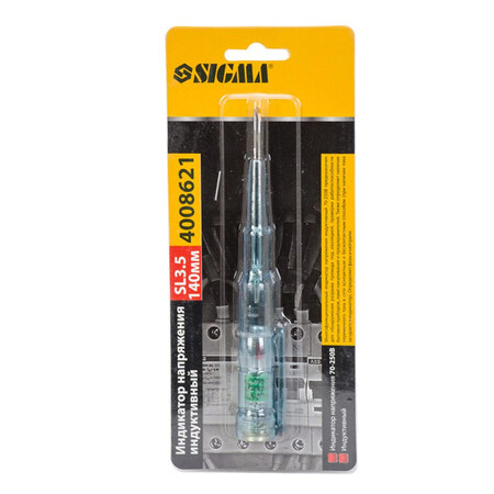 Індикатор напруги індуктивний 140мм 70-250В SIGMA (4008621) багатофункціональний індикатор напруги індуктивний 70-250В призначений для виявлення розриву дроту під ізоляцією, перевірки працездатності побутових приладів, ламп розжарювання і запобіжників. Також визначає наявність змінного струму в мережі контактним і безконтактним способом (при наявності струму загорається індикатор). Визначає фази і нейтралі.
