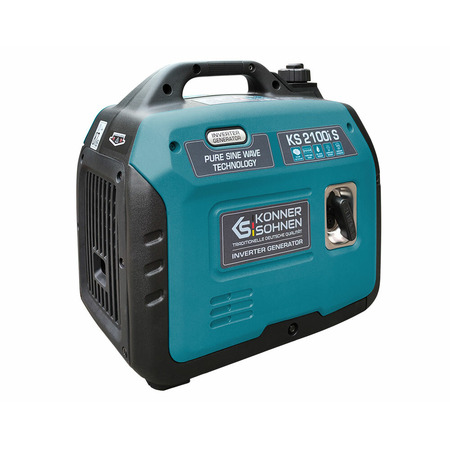Бензиновий генератор інверторного типу KS 2100i S німецької торгової марки Könner & Söhnen в шумозахисному корпусі – це зручне компактне, практично безшумне джерело електроенергії. Ключова особливість даної моделі полягає в тому, що вона виробляє електричний струм з правильною синусоїдою. Економічний режим дозволяє знизити витрату палива до 50% при малих навантаженнях завдяки зниженню оборотів двигуна. Альтернатор з мідною обмоткою і потужний двигун K&S гарантують безаварійне і тривале використання та відповідають всім європейським стандартам якості. Наявність LED-дисплея дає можливість якісніше контролювати роботу генератора і своєчасно проводити його технічне обслуговування.