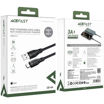 C8-04 кабель USB-A до USB-C від Acefast є ідеальним аксесуаром для підключення вашого смартфону, планшета чи іншого пристрою до джерела живлення або комп'ютера. Він надійно з'єднає ваші пристрої для передачі даних та ефективної зарядки, завдяки чому стане у нагоді в повсякденному використанні.