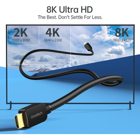 Вихід 8K HDMI: цей кабель HDMI підтримує високу роздільну здатність 8K (7680 x 4320) 60 Гц для захопливої картинки та плавної деталізації динамічних сцен, а також сумісний з 4K при 144 Гц, 2K при 165 Гц і т.д.