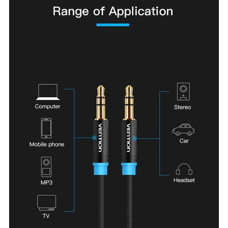 Кабель Vention Audio 3.5 mm M - 3.5 mm M призначений для передачі аналогових стереозвуковых сигналів між аудіо, аудіо-відео і (чи) комп'ютерними пристроями або їх компонентами.