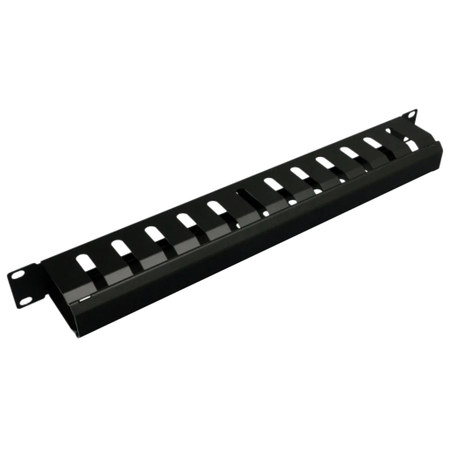 Металевий кабельний організатор із кришкою використовується для організації та надання естетичного вигляду кабелям комутації (мідним та оптичним патч-кордам), підключеним між активним та пасивним мережевим обладнанням. Організатор встановлюється у вертикальні напрямні 19″ між комутатором та патч-панеллю. Укладання патч-кордів в органайзер знижує механічне навантаження на порти RJ-45 комутатора та панелі, продовжуючи їх термін служби.