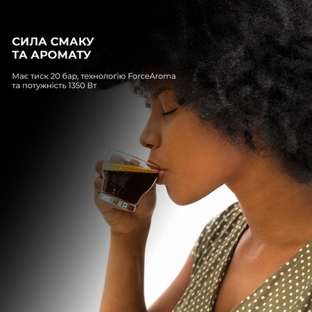 Ми отримуємо задоволення від смакових якостей кави внаслідок його екстракції. Завдяки тиску 20 бар і технології ForceAroma кавоварка витягує з меленої кави максимальний смак і аромат. Насолоджуйтеся всієї вишуканістю улюбленого напою.