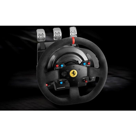 Кермо та педалі Thrustmaster T300 Ferrari Integral RW Alcantara edition 4160652 - це високоякісний ігровий руль і педалі, які спеціально призначені для використання на комп'ютерах та ігрових консолях PlayStation 3, PlayStation 4, і PlayStation 5. Цей набір має ліцензійне відтворення руля Ferrari 599XX EVO, обтягнутого Alcantara, що надає реалістичний вигляд та відчуття автомобільного гоночного керма.