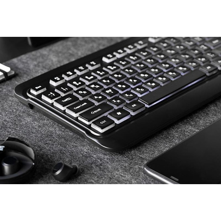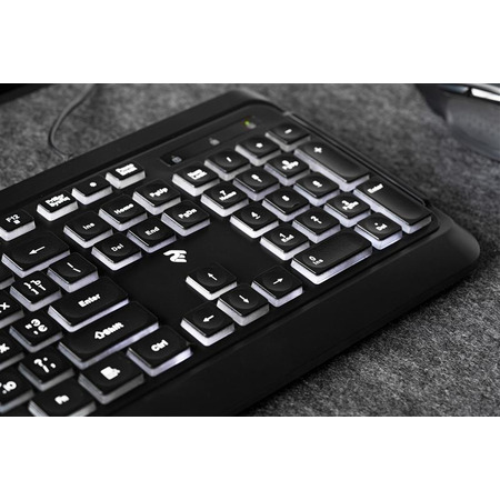 Клавіатура ідеально підходить для домашнього використання, адже з нею легко працювати вдень та вночі завдяки підсвічуванню клавіш білим м’яким кольором. 12 мультимедійних клавіш додадуть додаткового комфорту під час переглядів фільмів чи прослуховування музики. А оригінальна ергономічна форма клавіш створена для тривалого використання.