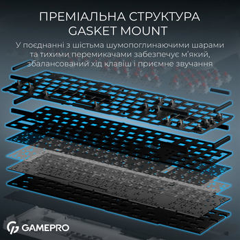 GamePro Asgard Drakkar — це повнофункціональна, тиха, технологічна та стильна клавіатура, яка поєднує виняткову ергономіку, сучасні можливості та преміальний акустичний досвід