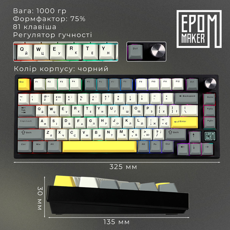 Однією з найцікавіших особливостей клавіатури є яскраве RGB-підсвічування, яке додає не тільки естетичної привабливості, а й функціональності. Ви можете створювати різноманітні світлові ефекти, регулюючи кольори та анімації відповідно до настрою або атмосфери, яку хочете створити. Крім того, підсвічування підтримує як український, так і англійський алфавіт, що робить клавіатуру універсальним рішенням для користувачів, які працюють з різними мовами. Підсвічування не тільки виглядає красиво, але й додає зручності, особливо при низькому освітленні.