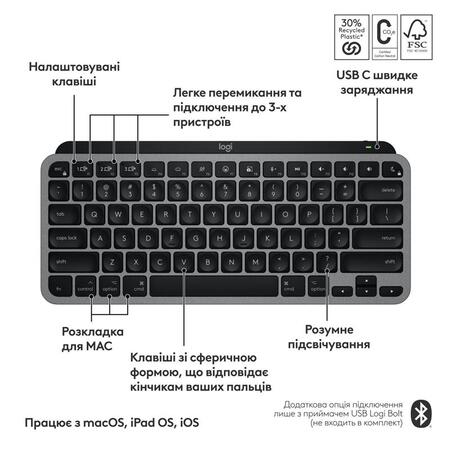 MX Keys Mini для Mac оптимізовано для macOS та iPadOS. З розкладкою клавіш для Mac, дизайном у відповідних до Apple кольорах, що гармонійно доповнює вашу Apple екосистему.