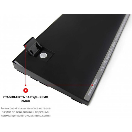 За будь-яких умов, клавіатура на своєму місці завдяки протиковзним ніжкам із м’якої гуми.