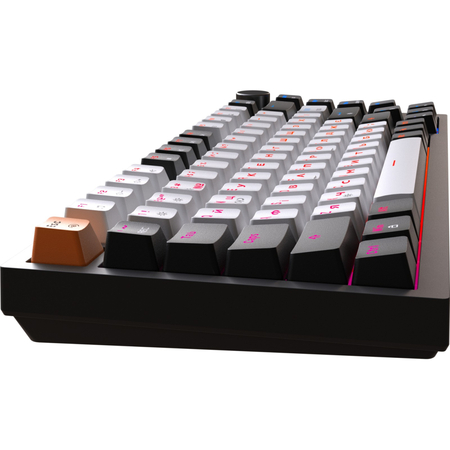 Клавіатура має 82 клавіші та зручний регулятор гучності, що дозволяє легко керувати звуком. Завдяки конструкції Gasket mount із двома шумопоглинаючими шарами піни EVA натискання клавіш стають м’якими та мають дуже приємний звук при наборі тексту. Механічні перемикачі типу outemu red лінійні, що робить їх ідеальними для тихої роботи. Крім того, перемикачі мають ресурс до 50 мільйонів натискань, що робить термін їхньої роботи дуже тривалим.