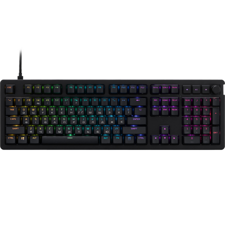 1. **Механічні переключувачі HyperX Red**: Клавіатура використовує професійні механічні переключувачі HyperX Red, які забезпечують високу швидкість реакції, відмінну точність та комфорт при натисканні клавіш.