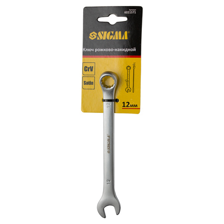 Ключ ріжково-накидний 12мм CrV satine з підвісом SIGMA (6021571) - рожково-накидні ключі є необхідним інструментом при складанні і розбиранні болтових з'єднань, що мають шестигранний профіль. Призначені для монтажу різьбових з'єднань і обслуговування кріплення, який відповідає розміру ключа.