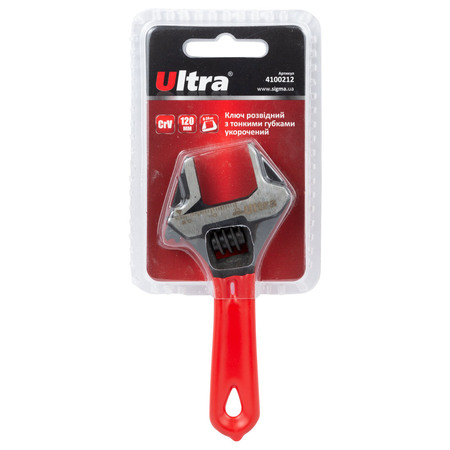 Ключ розвідний з тонкими губами укорочений 120мм, 0-24мм CrV ULTRA (4100212) являє собою універсальний ручний інструмент, накидна частина якого може підлаштовуватися під розмір гайки. Його робоча частина оснащена рухливими губами, які розводяться на потрібну відстань за допомогою гвинтового механізму.