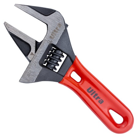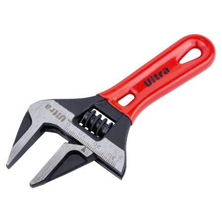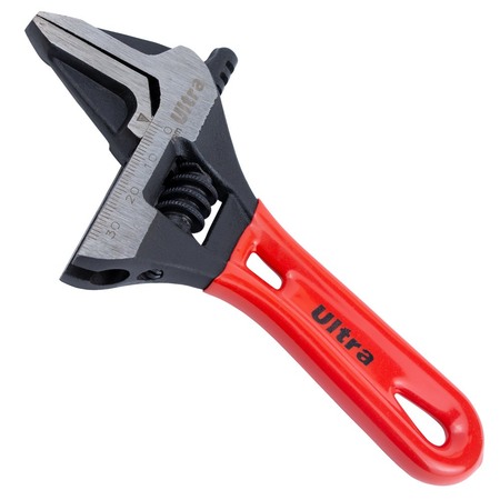 Ключ розвідний з тонкими губами укорочений 140мм, 0-34мм CrV ULTRA (4100222) являє собою універсальний ручний інструмент, накидна частина якого може підлаштовуватися під розмір гайки. Його робоча частина оснащена рухливими губами, які розводяться на потрібну відстань за допомогою гвинтового механізму.