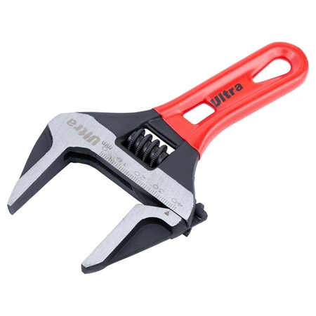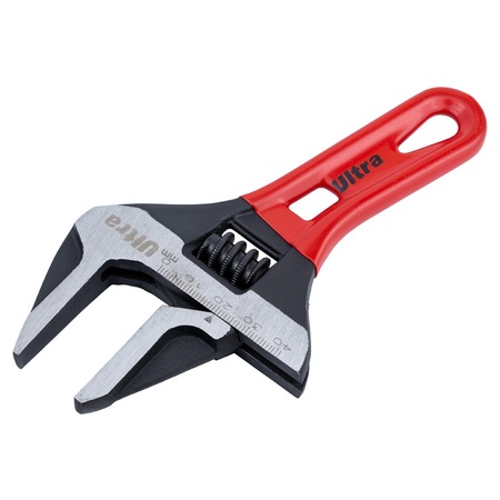 Ключ розвідний з тонкими губами укорочений 155мм, 0-41мм CrV ULTRA (4100232) являє собою універсальний ручний інструмент, накидна частина якого може підлаштовуватися під розмір гайки. Його робоча частина оснащена рухливими губами, які розводяться на потрібну відстань за допомогою гвинтового механізму.