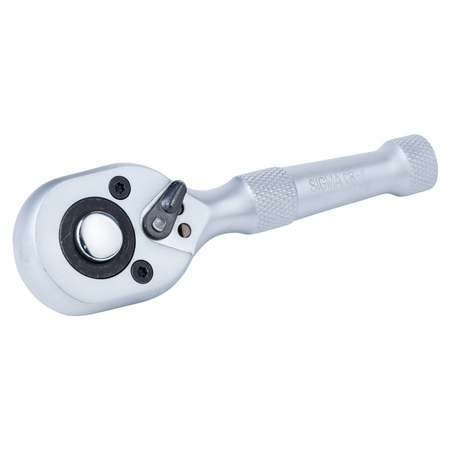 Ключ-тріскачка укорочена з металевою ручкою 1/2" 140мм 45T CrV SIGMA (6050231) - це необхідний інструмент при виконанні робіт з різьбовими з'єднаннями, який повинен бути в арсеналі кожного автослюсаря і майстри. Даний інструмент дозволяє виконувати монтаж / демонтаж різьбових з'єднань з допомогою біт з адаптерами або за допомогою торцевих головок.