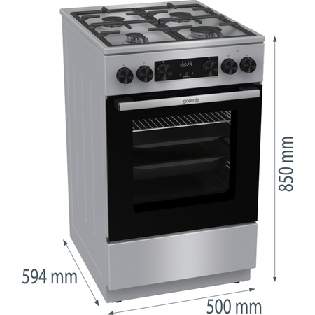 Кухонна комбінована плита Gorenje GKS5C70HXF - це сучасний та функціональний кухонний прилад, який поєднує в собі варильну плиту та духову шафу. Ця плита може мати газові або електричні конфорки для готування на поверхні, а також велику духовку для приготування страв.