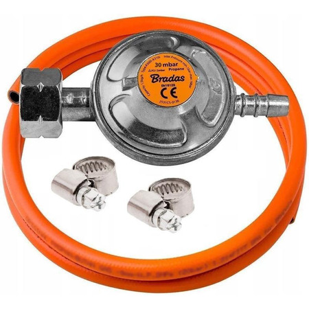 Комплект для підключення газового обладнання BRADAS CT з редуктором типу Shell W21.8x1/14 LH та шлангом довжиною 2 метри (674012407944) - це комплект для безпечного та зручного підключення газового обладнання.