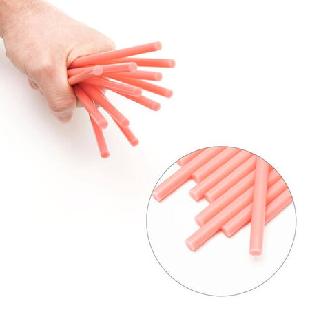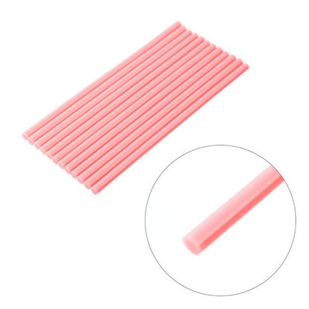Клейові стрижні рожевого кольору універсальні, підходять для різних завдань. Діаметр стрижня 7,4 мм - один із найпоширеніших і найпопулярніших розмірів, підходить до будь-яких марок клейових пістолетів. Сам стрижень довжиною 200 мм, в упаковці - 12 штук.