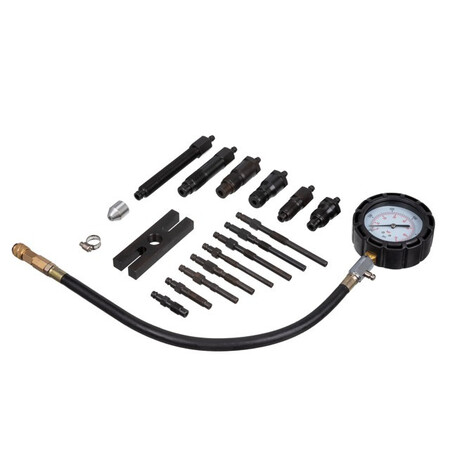 Протиударний корпус манометра разом з армованим шлангом забезпечують надійне утримання тиску. Завдяки гнучкості шланга компресометром можна працювати у важкодоступних місцях з обмеженим доступом. Після вимірювання тиск скидається натисканням на бічний клапан, а стрілка манометра встановлюється на нульове значення шкали.