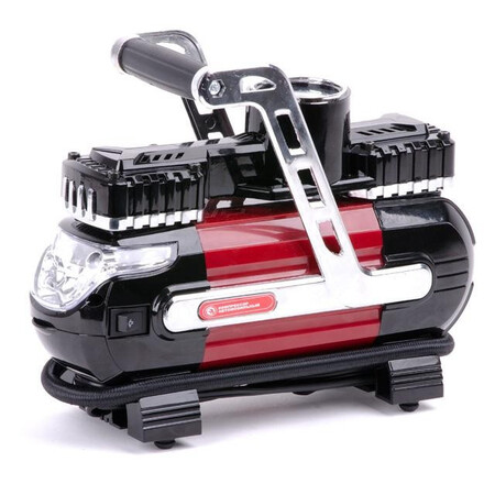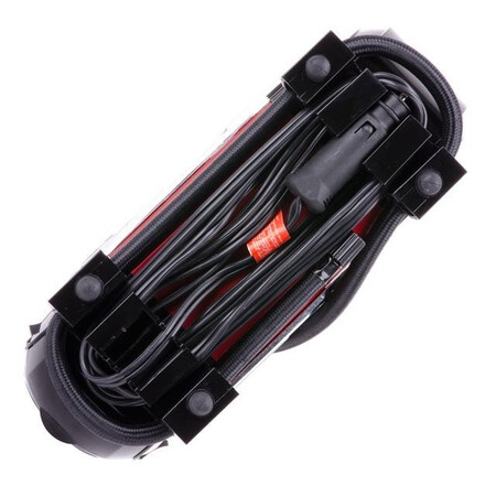 Компресор має дуже скромні габарити, тому разом із комплектом та сумкою поміститися навіть у невеликих багажниках. Живлення здійснюється від прикурювача автомобіля 12 В, тому ви зможете легко накачати колесо в дорозі. Довжина мережевого дроту 3 метри.