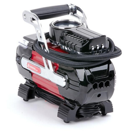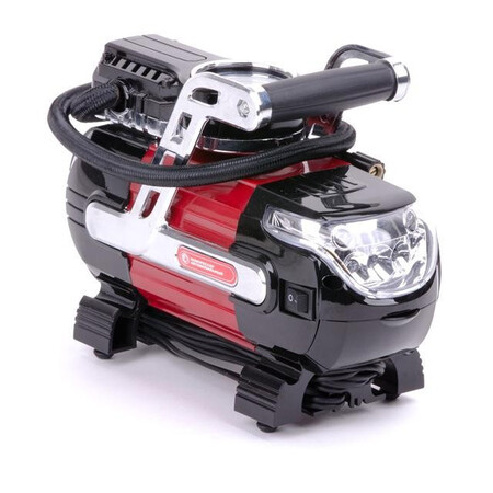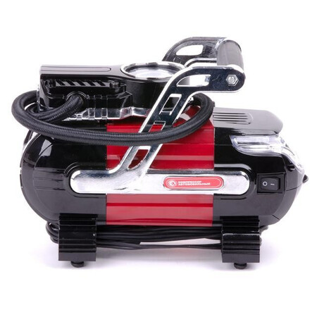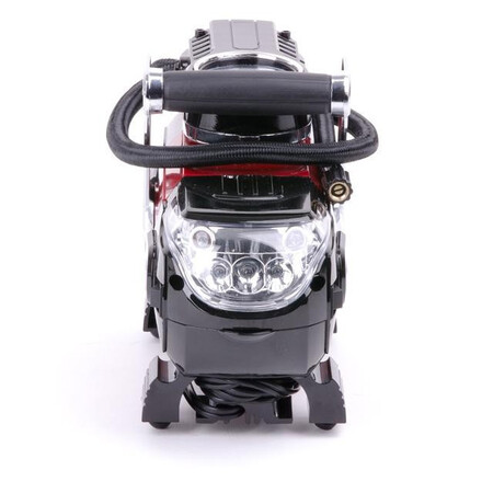Компресор має дуже скромні габарити, тому разом із комплектом та сумкою поміститися навіть у невеликих багажниках. Живлення здійснюється від прикурювача автомобіля 12 В, тому ви зможете легко накачати колесо в дорозі. Довжина мережевого дроту 3 метри. Вбудований LED-ліхтар допоможе зручно накачати колесо навіть у темну пору доби, працює як від прикурювача, так і від батарейок ААА типу.
