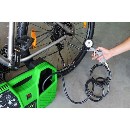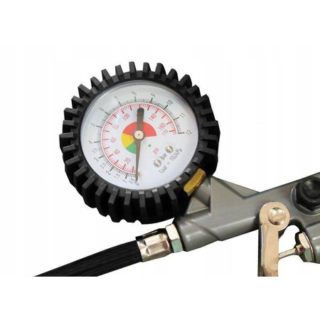 5. **Манометр і відпускний клапан**: Компресор обладнаний манометром для вимірювання тиску та відпускним клапаном для швидкого відкачування повітря.