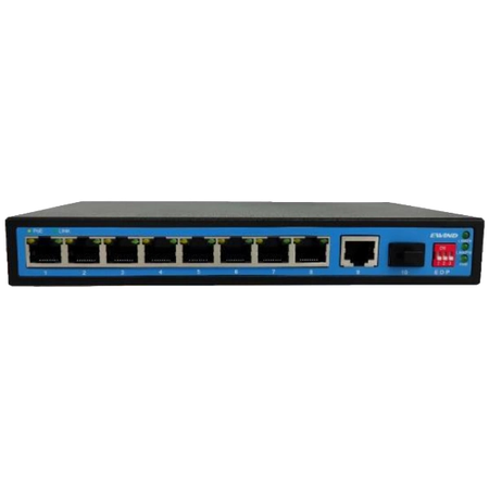 ● Downlink порти: 8х 10/100M RJ45 PoE;● Uplink порти: 1х 10/100/1000M RJ45, 1х 10/100/1000M SFP;● Живлення: 52В DC;● Протокол PoE: IEEE802.3af/at бюджет 120 Вт;● Робоча температура: -20º - + 55ºC;● Підтримка AI Watchdog, самовідновлення портів, VLAN, розширення відстані до 300 метрів, автоматична зміна швидкості, пріоритетний порт та зниження витрат після перепродажу;● 200x105x29 мм