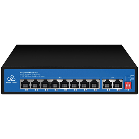 ● Downlink порти: 8x RJ45 (100M);● Uplink порти: 2x RJ45 (100M)● Живлення: AC100~240V;● Робоча температура: -20º - +55ºC;● Підтримує віддалене керування хмарною платформою EWIND та роботу мобільної програми, пропонуючи різні оповіщення в реальному часі, виявлення несправностей та перезапуск порту тощо;● Стандарти PoE IEEE 802.3af/at 15,4 Вт/30 Вт на порт бюджет 120Вт;● 195 х 130 х 40 мм