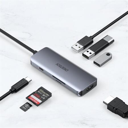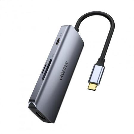 Багатофункціональний концентратор Choetech 7in1 USB Type C - 3x USB 3.2 Gen 1 / пристрій читання карт SD і TF / HDMI 4K 30Hz / USB Type C сірий (HUB-M19 сірий):