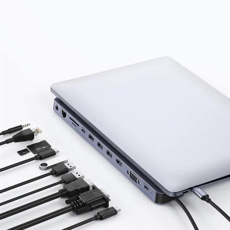 Концентратор Choetech USB Type C 11in1 100W PD Hub Adapter Сірий (HUB-M20): Багатофункціональний концентратор для ноутбука 11 до 1 - 10 додаткових портів, що розширюють можливості ноутбука або ноутбука. Просто підключіть штекер - аксесуар не потребує спеціальної конфігурації. Достатньо підключити кабелем до комп’ютера. Довговічність і довговічність - Підставка виготовлена з високоякісного алюмінієвого сплаву, який швидко позбавляє зайвого тепла. Потрійний захист - від навантаження, зворотного живлення та короткого замикання. Нековзкі накладки – надійно тримайте своє спорядження на місці. Думаючи про Macbook – дизайн підставки ідеально підійшов до комп’ютерів Macbook. Незалежні системи управління – кожен порт керується незалежним чіпом, що гарантує високу продуктивність. <Широка сумісність - станція працює з операційними системами Windows 10/8/7 та Mac OS.