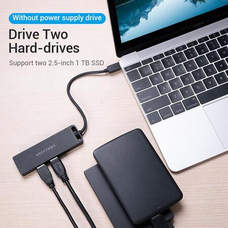 USB хаб Vention дозволить власникам ноутбуків розширити кількість доступних роз’ємів високошвидкісного інтерфейсу USB 3.1 зі швидкістю передачі даних до 5 Гбіт/с. Хаб Vention дозволяє одночасно підключити до чотирьох пристроїв з однаковими чи різними інтерфейсами: USB 3.0, USB 2.0, USB 1.1. Ви зможете підключити через нього: USB мишу та клавіатуру, USB флешки, зовнішній жорсткий диск HDD або SSD, відеокамеру, принтер, сканер та інші пристрої. Живлення адаптера забезпечується по шині USB, проте для підключення енергоємних пристроїв, таких як HDD необхідно підключати додаткове живлення через порт Micro USB, розташований на корпусі хаба. Підтримує функцію Plug-and-Play та не потребує встановлення драйверів. Працює за технологією OTG.