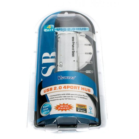 Компактний концентратор USB VE 410 Viewcon з додатковим джерелом живлення для підключення до 4-х пристроїв. Особливості: -інтерфейс: USB 2.0; -швидкість передачі даних: 480 Мбіт / с; -кількість портів: 4; -живлення: по шині USB або від мережі 220В; -блок живлення в комплекті