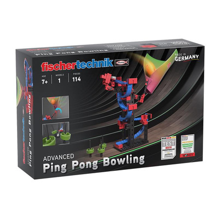 Конструктор fisсhertechnik ADVANCED, який поєднує в собі елементи пінг-понгу та боулінгу, не існує в офіційному асортименті виробника. Але ви можете спробувати створити власну гру, яка поєднує ці дві видатні спортивні активності, використовуючи конструктор fisсhertechnik та вашу творчість. Наприклад, обладнати стіл для пінг-понгу таким чином, щоб по центру була кегля або ціль, яку потрібно збити м'ячиком для пінг-понгу. Також можна створити механізм, який автоматично переміщуватиме кеглі, щоб зробити гру цікавішою. Ваша уява єдине обмеження - спробуйте створити унікальну комбіновану гру, яка надихне вас і ваших друзів до нових досягнень та цікавих вражень.