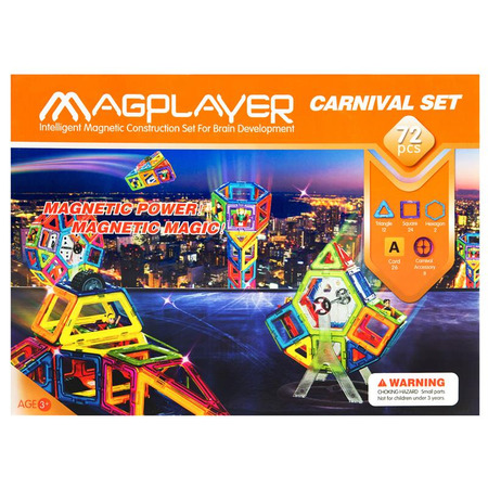 Magplayer магнітний набір 72 елементи може бути відмінним інструментом для навчання та розвитку дітей, а також для творчого відпочинку для всієї родини. Завдяки можливості легкої збірки та розбирання конструкцій, діти можуть безмежно експериментувати та творити нові ідеї.