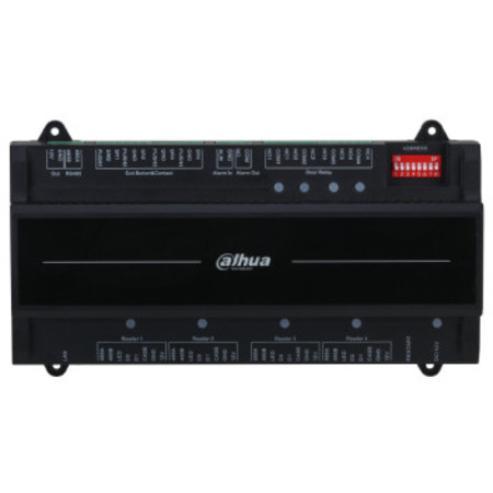 Мережевий контролер контролю доступом на 4 двері. Входи: 9 (4x - датчика двері, 4х - кнопки виходу, 1х - тривога), виходи: 5 релейних виходів (4х - закриття дверей, 1х - тривога). Функції: сигналізація відкриття картридера, сигналізація вторгнення, сигналізація тайм-ауту дверного датчика, сигналізація примусу, сигналізація перевищення порогового значення незаконної карти і сигналізація невірного паролю. 5x RS-485, 4xWiegand; DC 12В, PoE; 210х106х50 мм