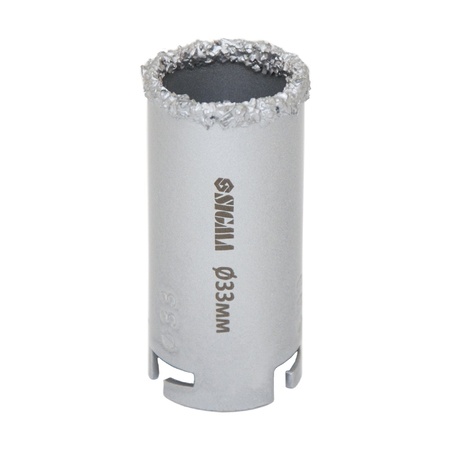 Коронка кільцева з вольфрамовим напиленням 33мм SIGMA (1512111) призначена для свердління отворів в бетоні, цеглі, кераміці, граніті, мармурі, плитці, пластику, пінобетон і гіпсокартон в безударном режимі. Застосовується в зборі з основою-державкою і центруючим свердлом.