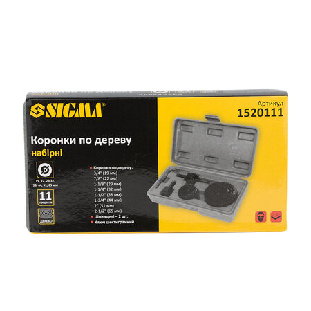 Коронки по дереву набірні Ø19, 22, 29, 32, 38, 44, 51, 65 мм (кейс) SIGMA (1520111)