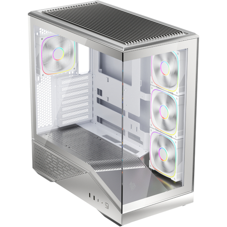 Панорамний огляд 270°: завдяки використанню загартованого скла на передній та бічній панелях без перегородки на куті, ви отримуєте безперешкодний вид на внутрішні компоненти вашої системи.