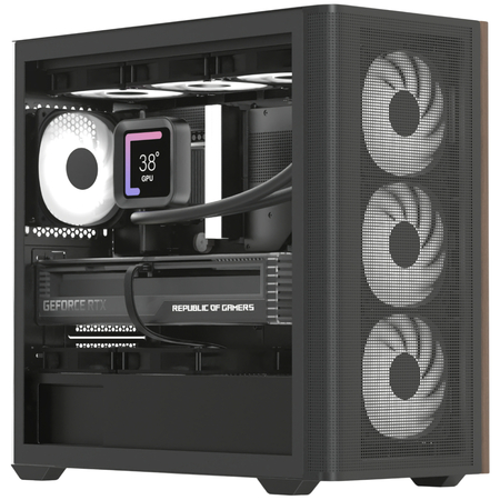 Відкиньтеся на спинку крісла та насолоджуйтеся одним із наших перших корпусів для ПК з дерев’яним акцентом, що має вишуканий вигляд, розроблений для створення природної атмосфери на вашому робочому столі.