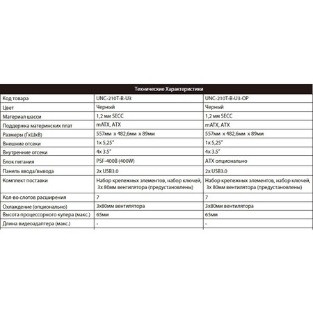 UNC-210T-B - надійний та міцний 2U промисловий корпус, виготовлений із сталі SEEC товщиною 1,2 мм. Підтримує встановлення недорогих низькопрофільних карт розширення без необхідності використання райзер-карти. Має дуже привабливу ціну як для 2U корпусу початкового рівня.