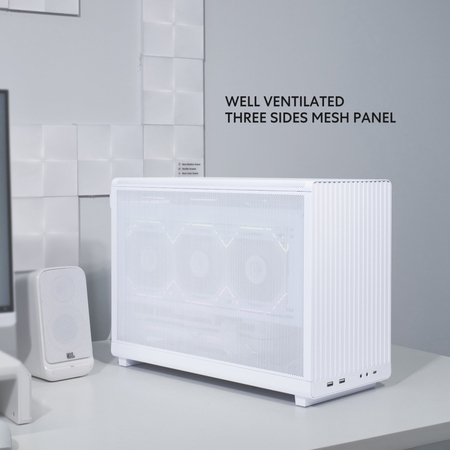 Вміщує материнську плату M-ATX та ITX з 4 слотами для графічного процесора розміром 415 мм.