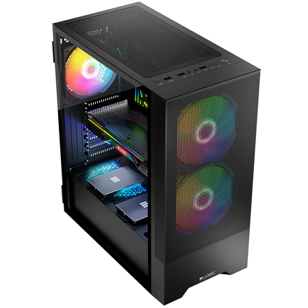 Корпус LogicConcept ARYA MESH+GLASS ARGB - це стильний і сучасний комп'ютерний корпус без блока живлення (БЖ) формату ATX. Він має чорне кольорове виконання і поєднання металевої сітки (mesh) і скла (glass) на бічній панелі, що створює елегантний зовнішній вигляд. Корпус комплектується двома вентиляторами діаметром 140 мм та одним вентилятором діаметром 120 мм з підтримкою RGB підсвітки, що дозволяє створити яскравий та кольоровий ефект.