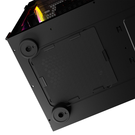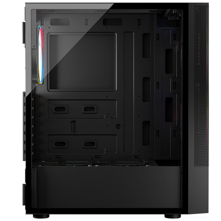 Корпус LogicConcept ARYA MESH+GLASS ARGB має відмінну вентиляцію завдяки металевій сітці на передній та верхній панелях, що забезпечує ефективний потік повітря всередині корпусу. Відкрите скло на бічній панелі дозволяє показати внутрішній компоненти комп'ютера та підсвітку вентиляторів. Корпус розрахований на материнські плати формату ATX і має достатньо місця для розміщення різних компонентів, таких як жорсткі диски, відеокарти, системи охолодження та інше.
