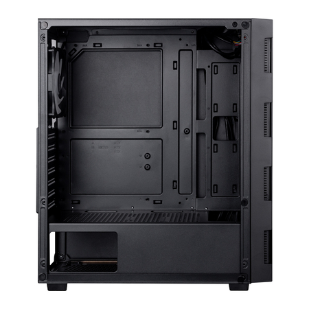 Це недорогий корпус для стаціонарного ПК з привабливим RGB-підсвічуванням, вдалою ергономікою та універсальним форм-фактором Midi-Tower. Призначений для повноформатних складання, має відмінні показники вентильованості, що дозволяє збирати продуктивні системи для ігор та професійної роботи без перегріву.