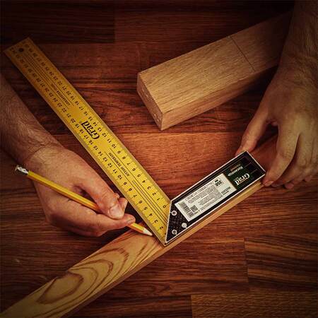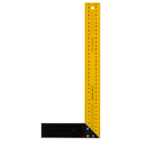 Металевий кутник з пофарбованою поверхнею і двосторонньою розміткою полотна. Призначений для розмітки і перевірки прямих кутів, а також для перевірки кута 45° при опрацюванні та складанні виробів.
