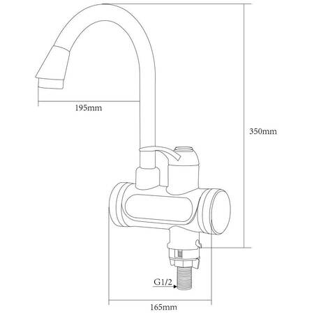 Даний проточник складається з термостійкого корпусу з цифровим дисплеєм і нагрівальними елементами. Регулювати температуру і натиск струменя допомагає ручка типу важеля. Гусак J-подібної форми, поворотний, аератор вбудований.