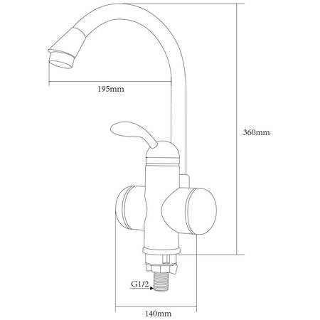 Цей проточний водонагрівач Акватика складається з термостійкого білого корпусу з елементами підігріву, поворотного J-образного виливу з аератором, а також важеля для регулювання натиску і температури струменя.