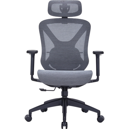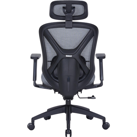 Крісло має систему підтримки попереку з регулюванням по висоті, що сприяє анатомічно правильному положенню тіла під час тривалого сидіння. Регульований підголівник додатково піклується про комфорт шиї та голови.