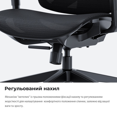 Динамічна поперекова підтримка, інтегрована в спинку, активно реагує на рухи тіла, забезпечуючи постійну підтримку спини — незалежно від того, сидите ви прямо чи відкидаєтеся назад.